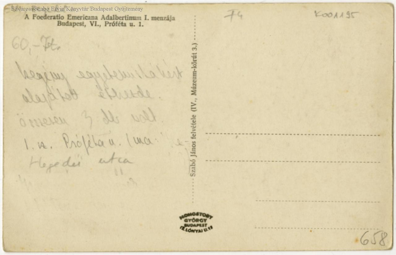 A Foederatio Emericana Adalbertinum I. menzája Budapest, VI., Próféta u. 1.