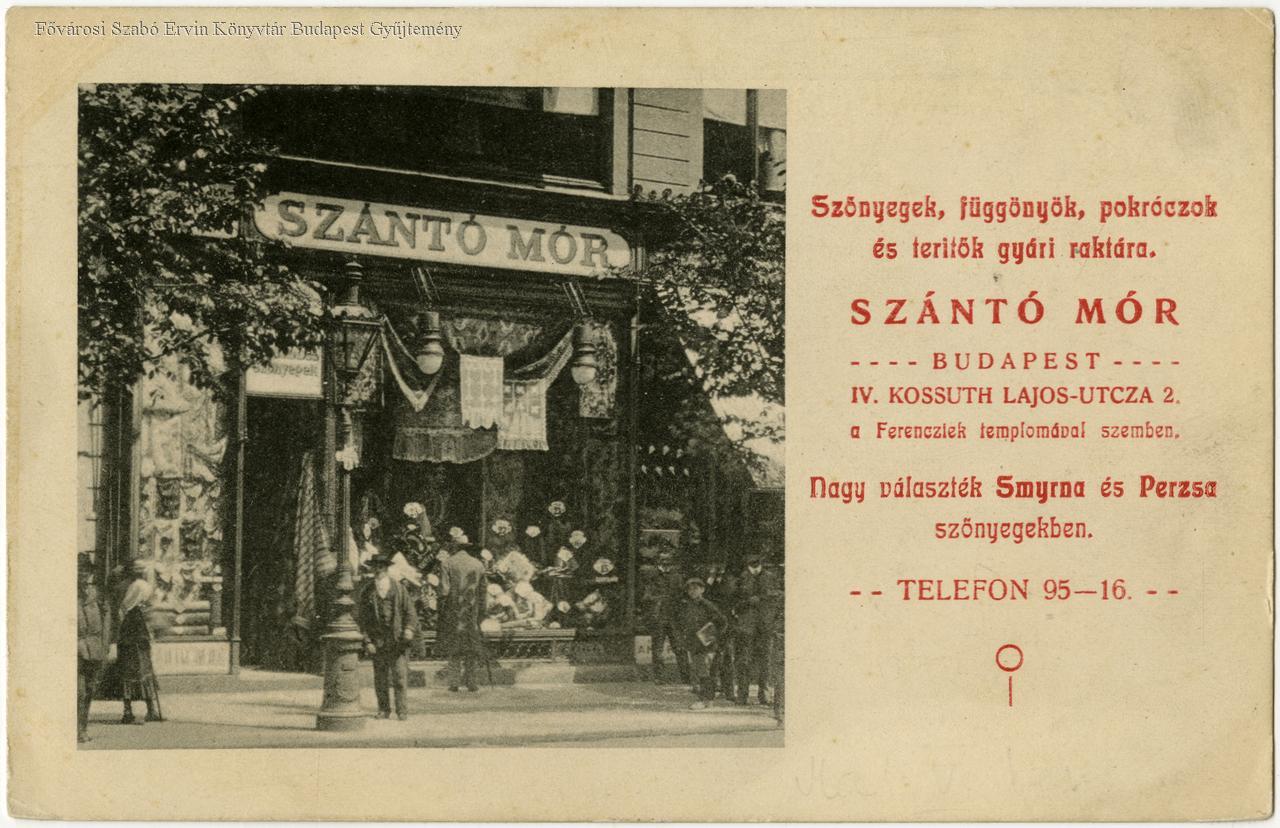 Szántó Mór, Budapest Kossuth Lajos-utcza 2. Szőnyegek, függönyök, pokróczok és terítők gyári raktára [...]