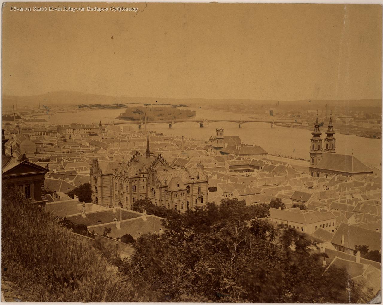[Budapesti látkép a Víziváros házaival, a Margit híddal, Margit-szigettel]