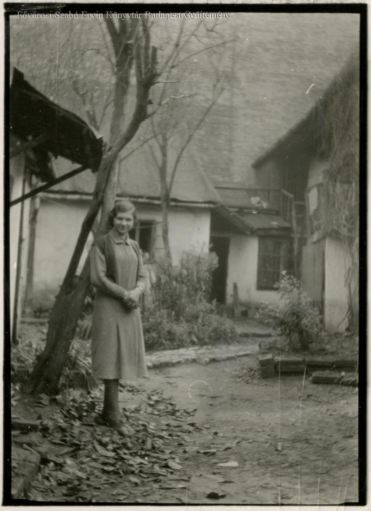 [Tabán, fiatal leány áll a Kereszt tér egyik házának udvarán]
