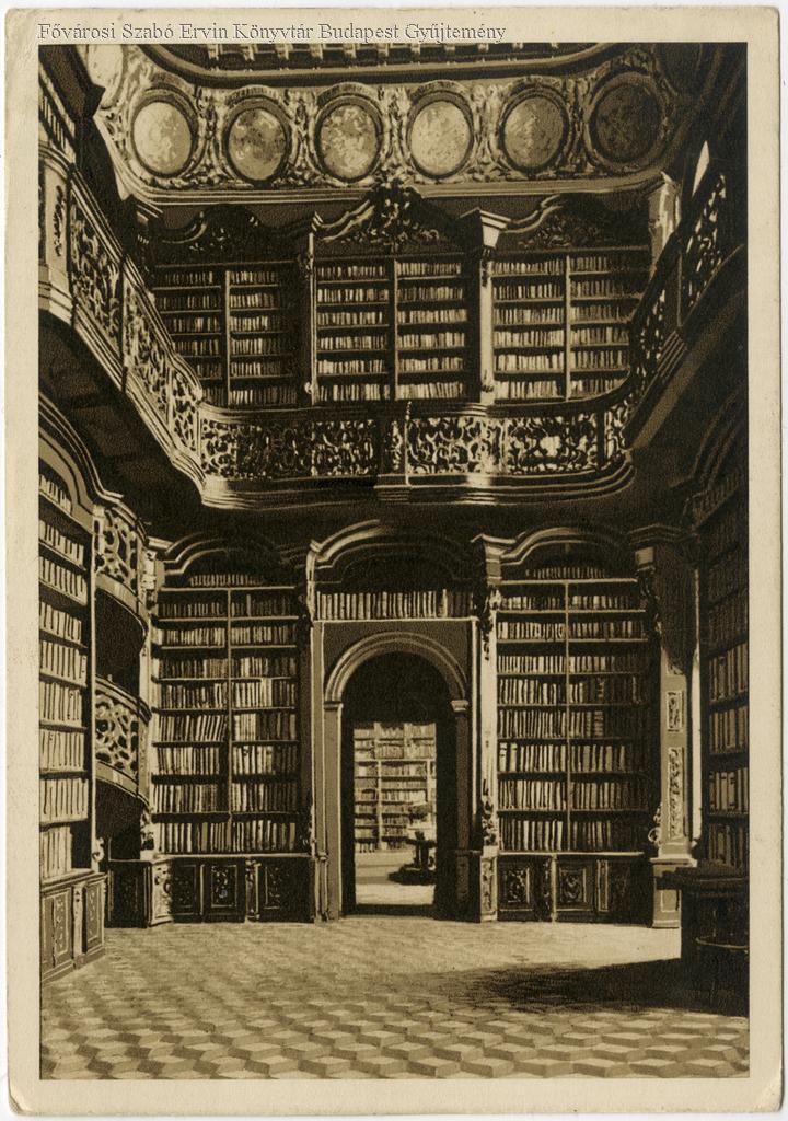 egyetem, egyetemi könyvtár, könyvszekrény, könyv, képes levelezőlap, belső felvétel, 1935