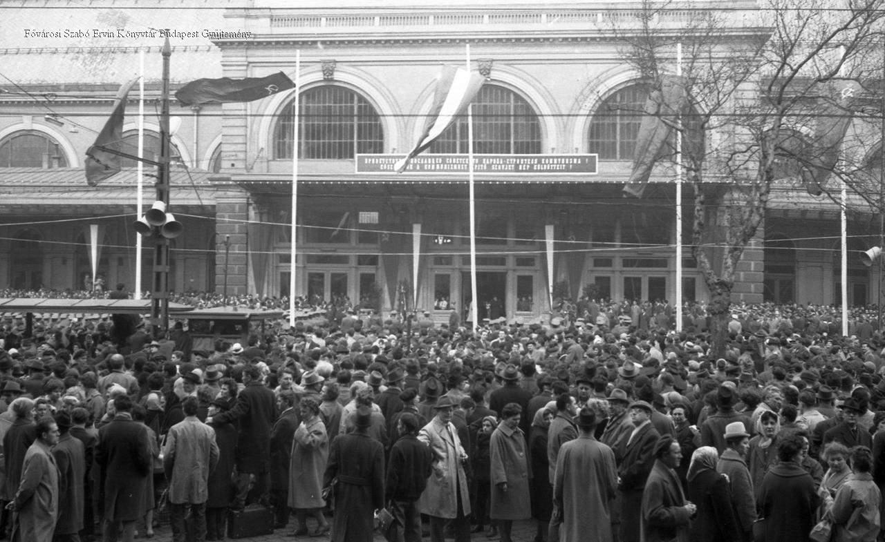 [Hruscsovot váró tömeg a Keleti pályaudvarnál]