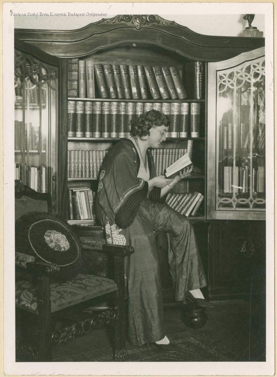 operaénekes, nő, fotel, könyvszekrény, 1930-as évek