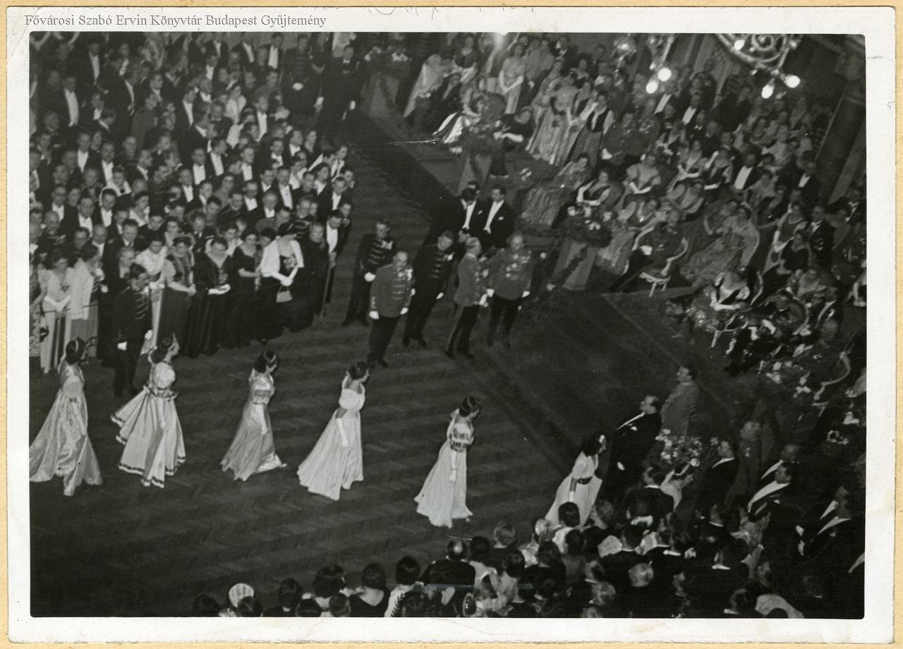 Vitézi bál a Vigadóban a kormányzó és Hellenbronth Antalné elvonulnak az elsőbálos lányok : 1940. febr.