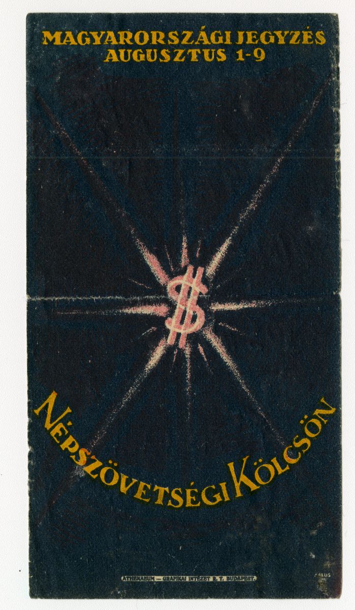 pénzügy, kölcsön, hitel, konszolidáció, nemzetközi kapcsolat, Népszövetség, Magyarország, Horthy-korszak, dollár, reklámnyomtatvány, kisnyomtatvány, aprónyomtatvány, számolócédula