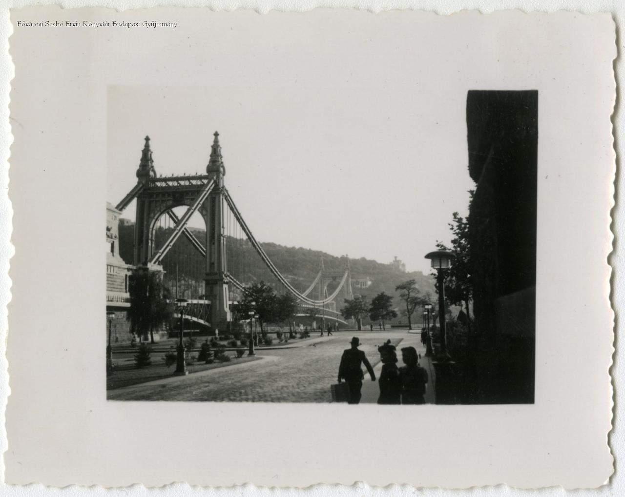 [Erzsébet híd a Piarista köz felől, háttérben a Gellérthegy]