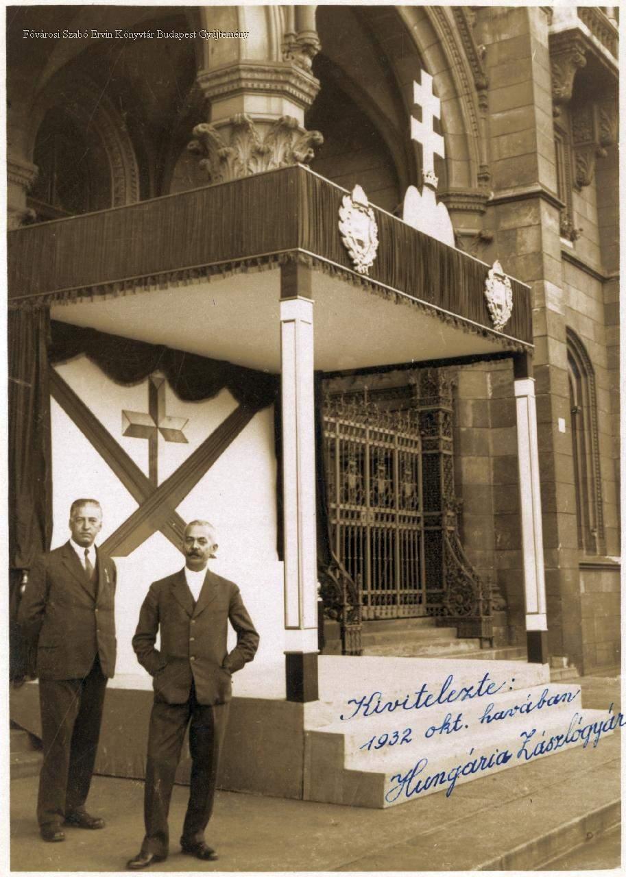 A jobb oldali férfi Veronács Gyula városházi tisztviselő. Gazdasági főfelügyelői rangban az Új Városháza rendezvényeinek lebonyolításáért felelős háznagy és a Központi Városháza gondnokságának vezetője volt, a díszítésekért ő felelt.