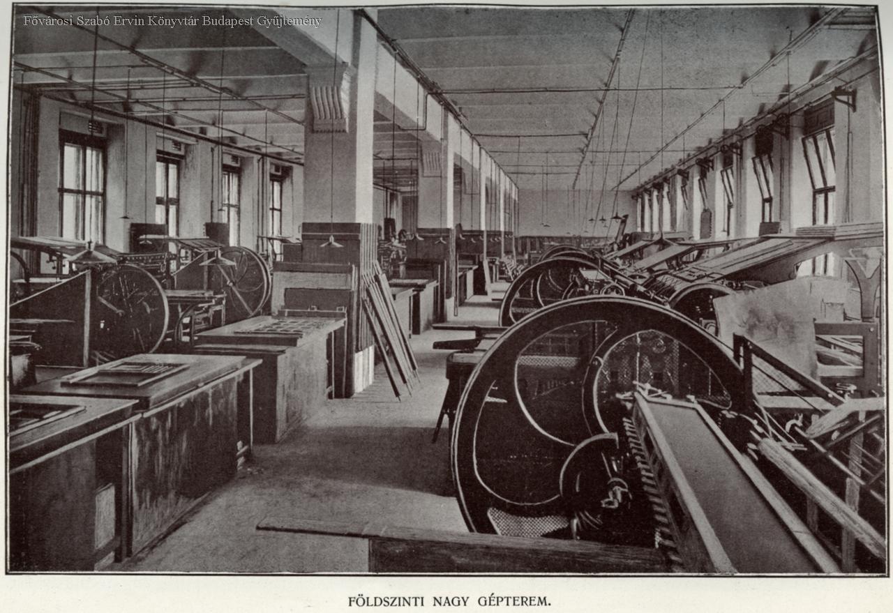 nyomdaipar, gép és berendezés, belső felvétel, terem, 1899