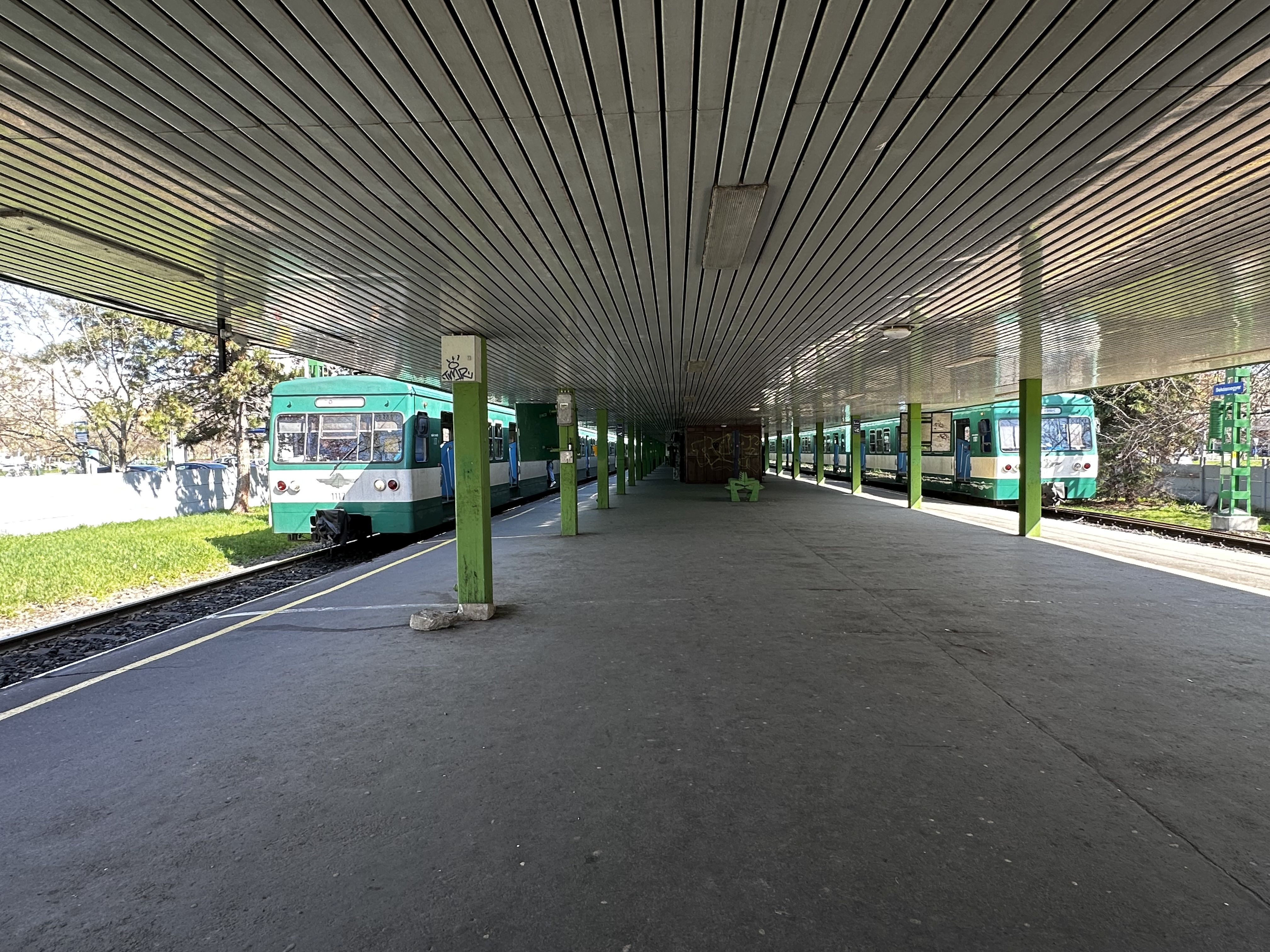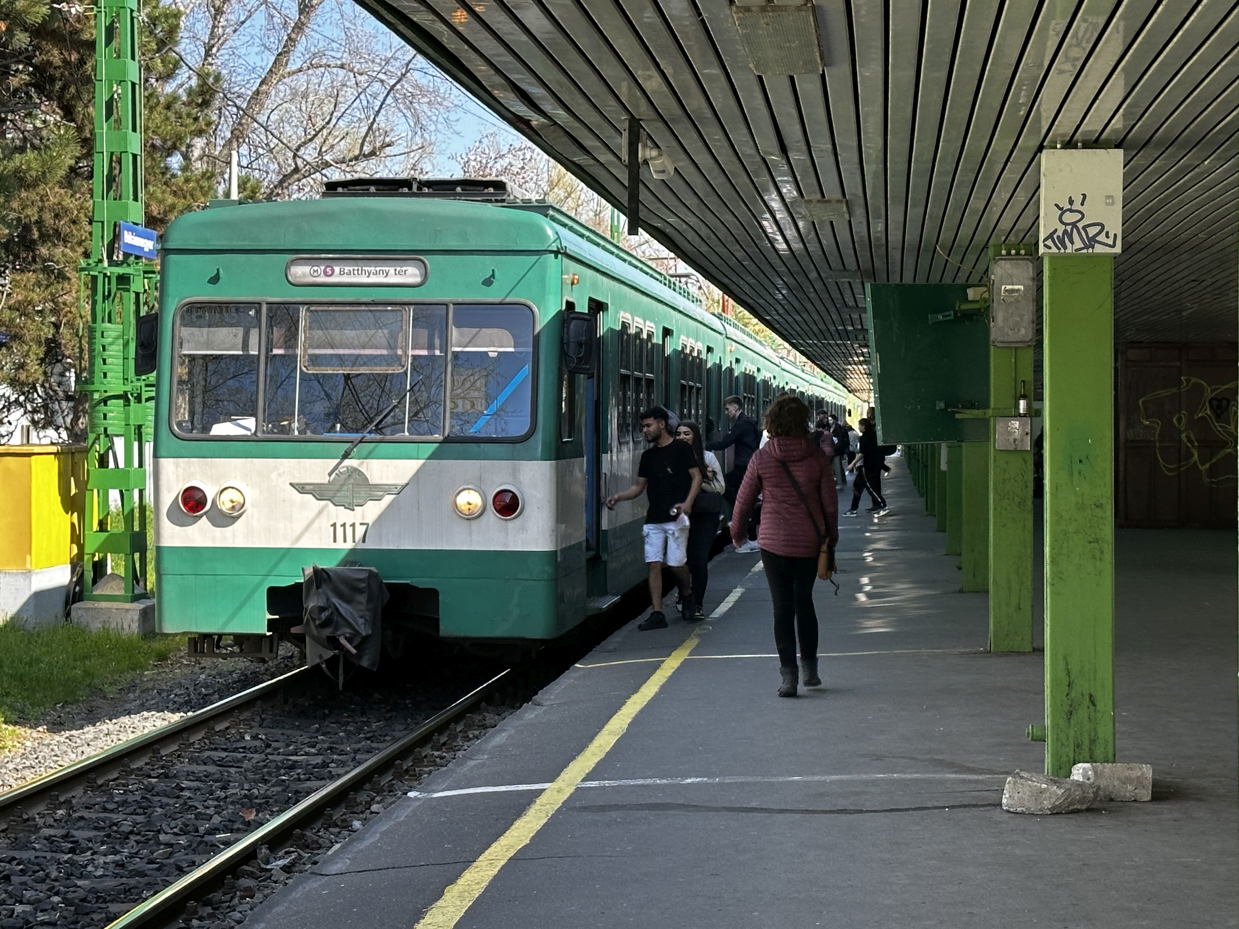 A 19. század végén, 1888-ban indult el a HÉV (helyiérdekű vasút) közlekedés Óbuda-Filatorigát vasútállomás és Szentendre között, gőzmozdony által vontatott szerelvényekkel. A vonal egyik állomása Békásmegyeren volt, ahol egy 110 m2 nagyságú felvételi helyet építettek.