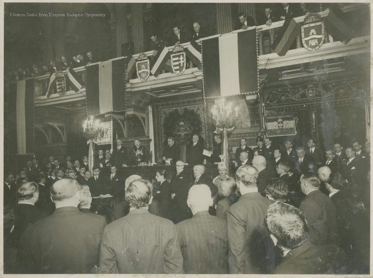 [Sipőcz Jenő harmadszori polgármesteri beiktatása, eskütétele az Új Városháza közgyűlési termében 1931. február 18-án]