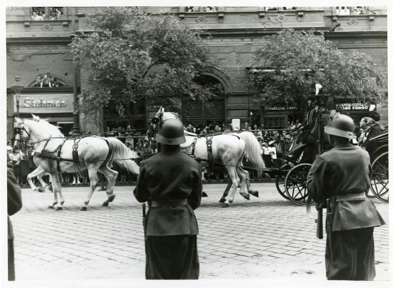 Horthy-korszak, külpolitika, miniszter, néptömeg, olaszok, katona, uralkodó, hintó, ló