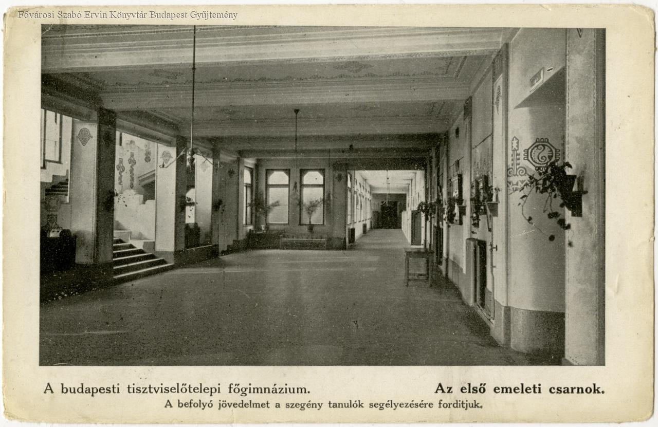 gimnázium, általános iskola, folyosó, belső felvétel, épületkép, képes levelezőlap, 1910 körül, századelő