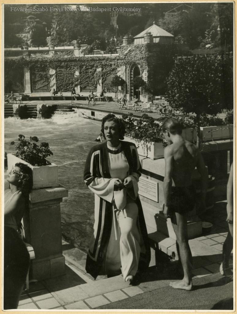 [Zarah Leander svéd filmszínésznő Budapesten a Gellért hullámfürdőben, 1938. szeptember]