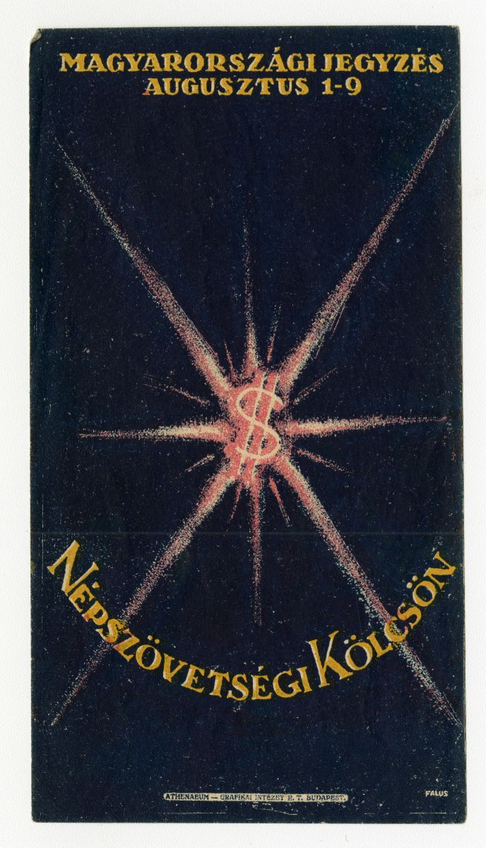 pénzügy, kölcsön, hitel, konszolidáció, nemzetközi kapcsolat, Népszövetség, Magyarország, Horthy-korszak, dollár, reklámnyomtatvány, kisnyomtatvány, aprónyomtatvány, számolócédula