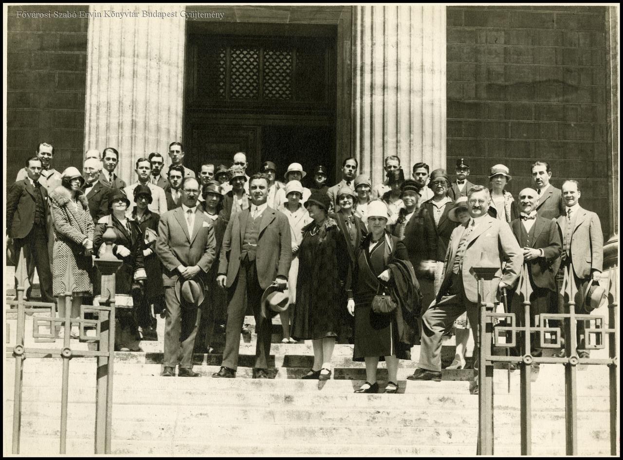 csoportkép, külföldi, amerikaiak, egyetem, látogatás, 1927