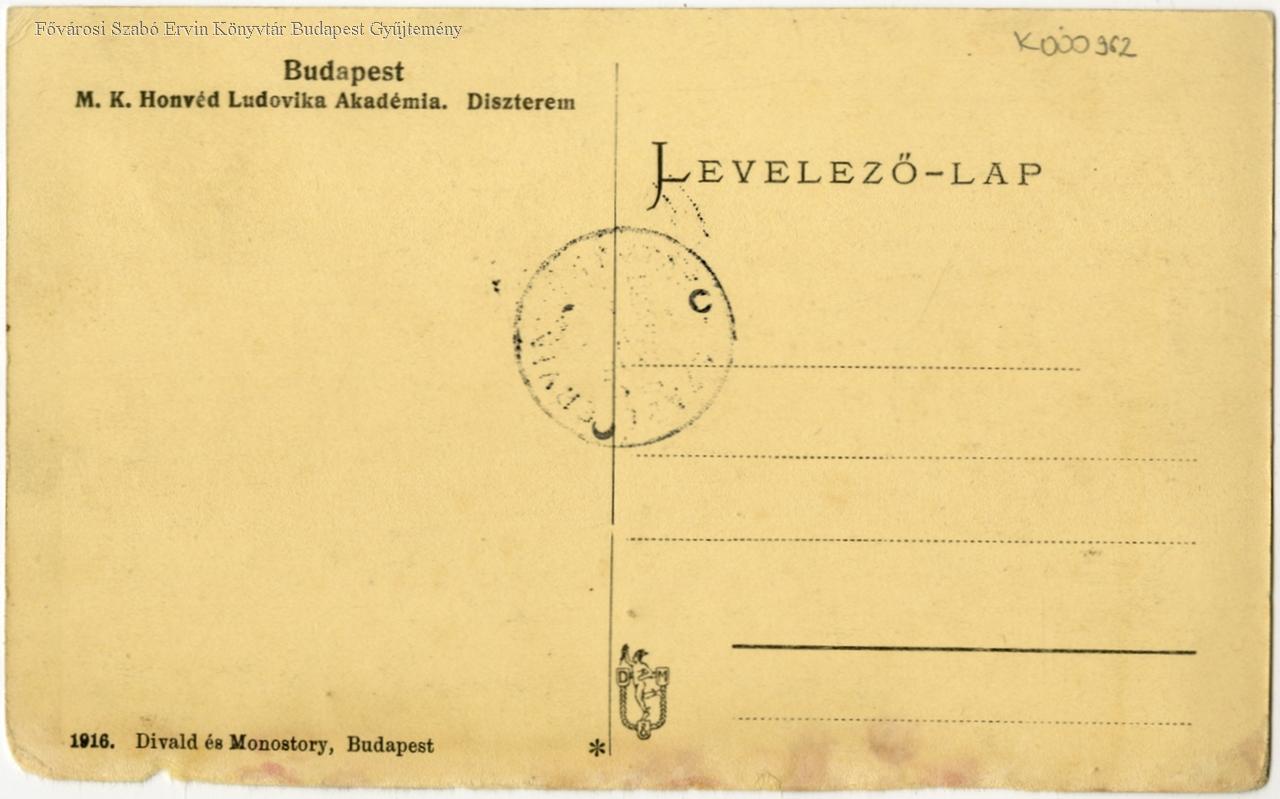 képes levelezőlap, belső felvétel, honvédség, tisztképzés, katonai akadémia, terem, festmény, lámpa, épületdíszítés, 1916