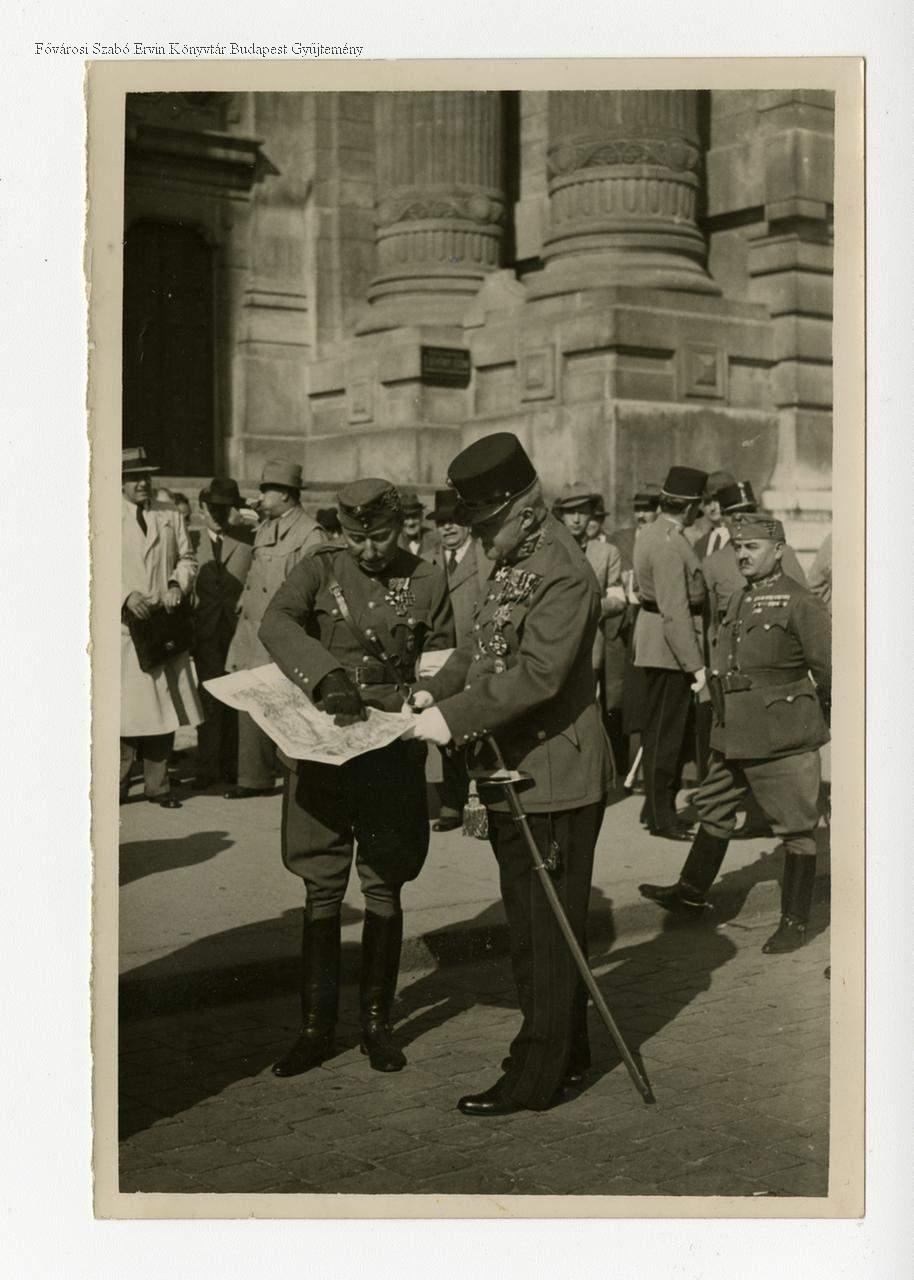 József királyi herceg vitéz Fábry Dániel tábornokkal, a légvédelmi gyakorlat vezetőjével, a tőzsdepalota előtt