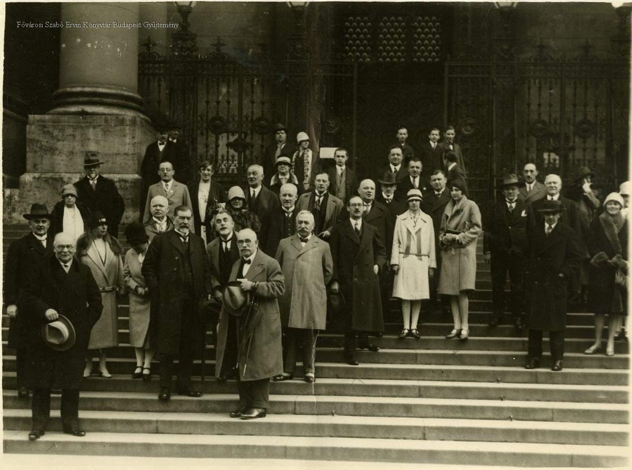 [A Nemzetközi Fürdőügyi Kongresszus résztvevői a Szent István Bazilika lépcsőin, 1937. október 7. és 14. között]