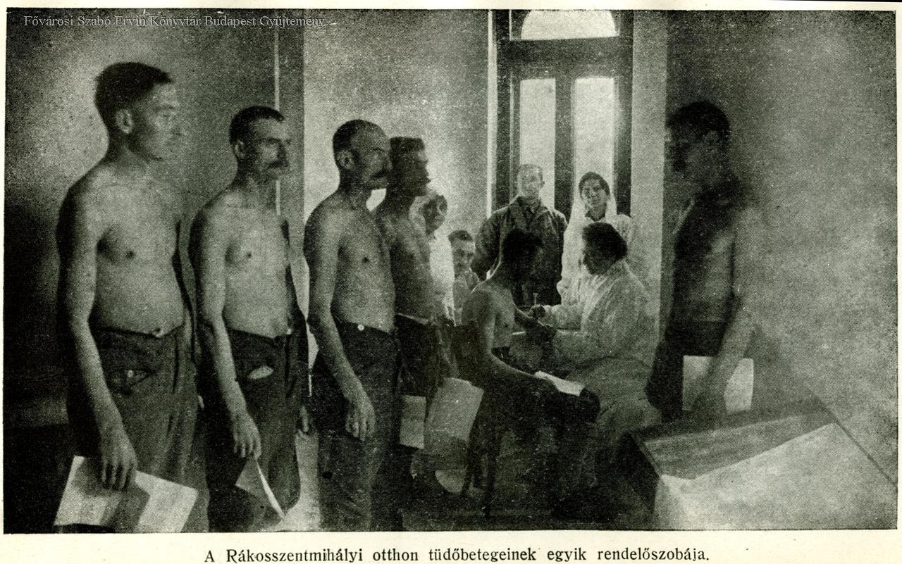 tüdőbeteg-gondozó intézet, épületkép, szanatórium, orvosi rendelő, férfi, katona, háborús sebesült, munkavégzés, kert, első világháború, külső felvétel, 1917