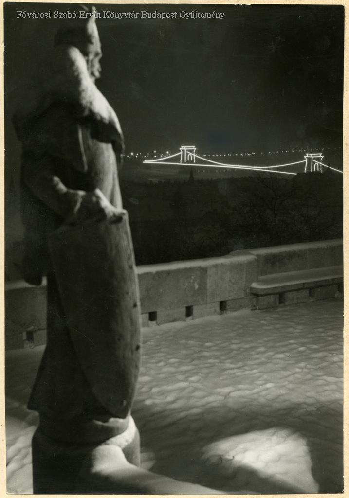 látkép, szobor, híd, kivilágítás, éjjel, 1939