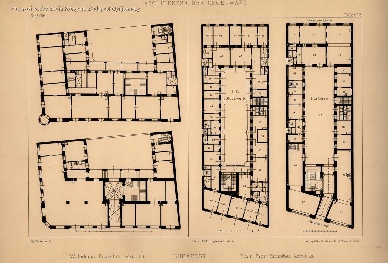 egyesület, zsidóság, jótékonyság, székház, bérház, lakóépület, tervrajz, 1893