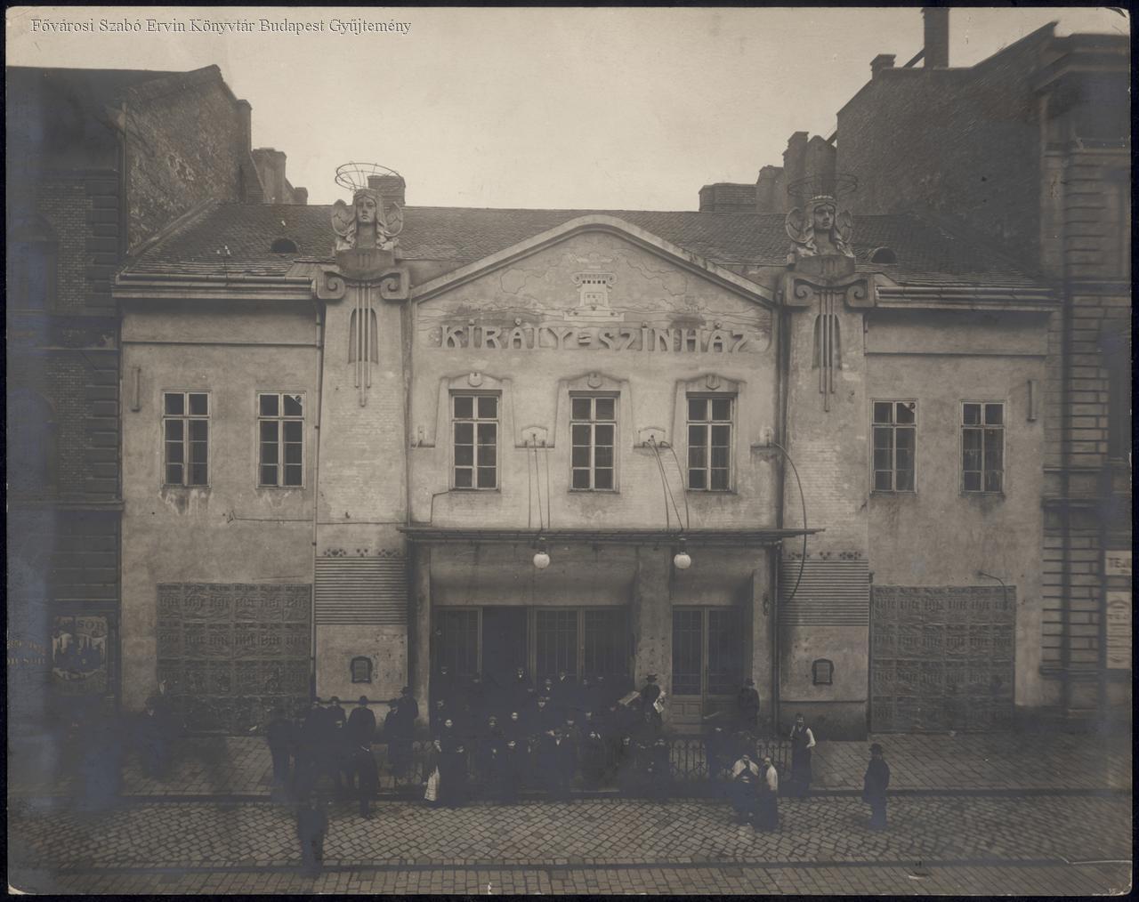 színház, díszítés, néptömeg, plakát, épületkép, külső felvétel, 1900-as évek