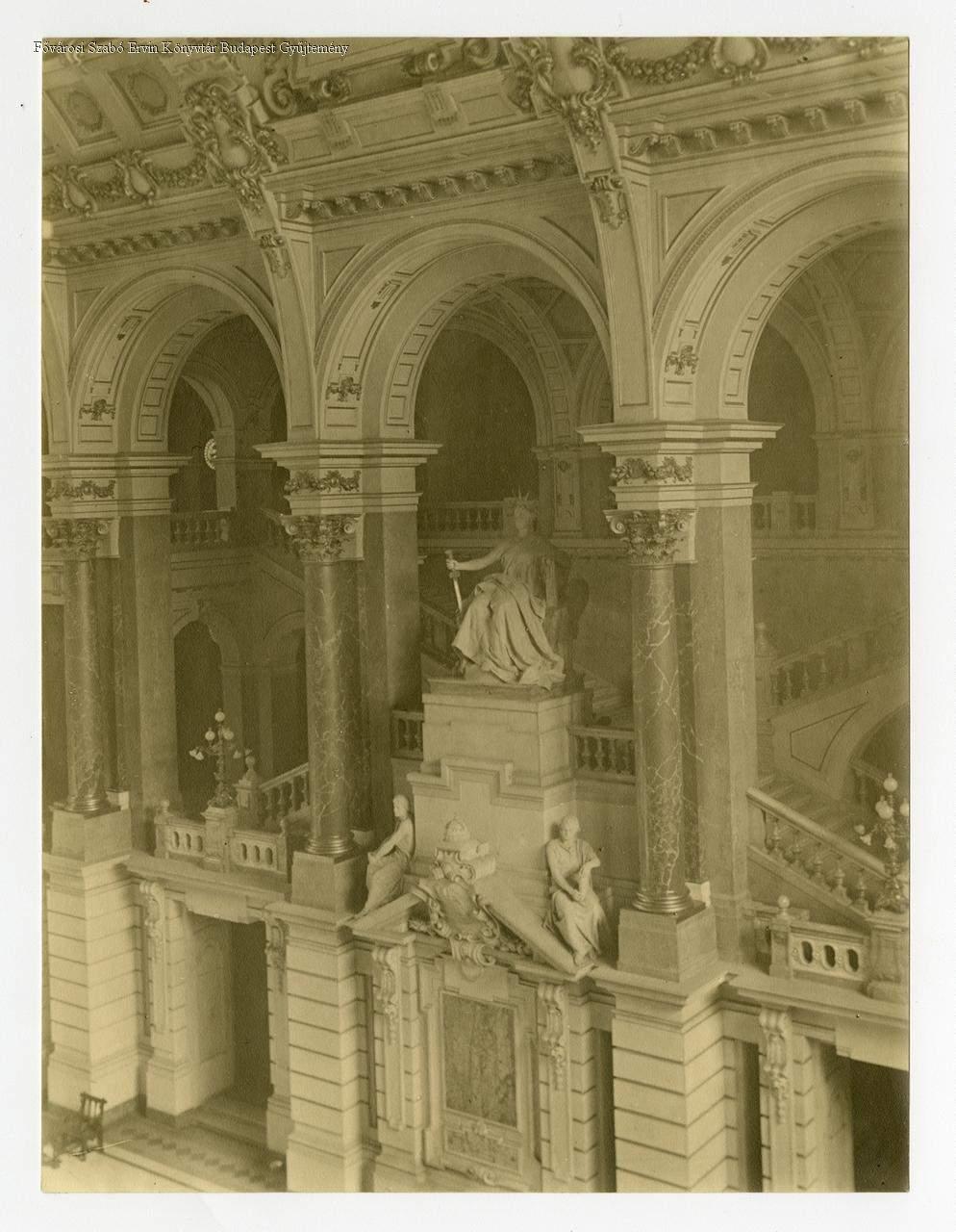 bíróság, előcsarnok, lépcső, márvány, épületdíszítés, szobor, épületfotó, belső felvétel, 1910-es évek, 1920-as évek