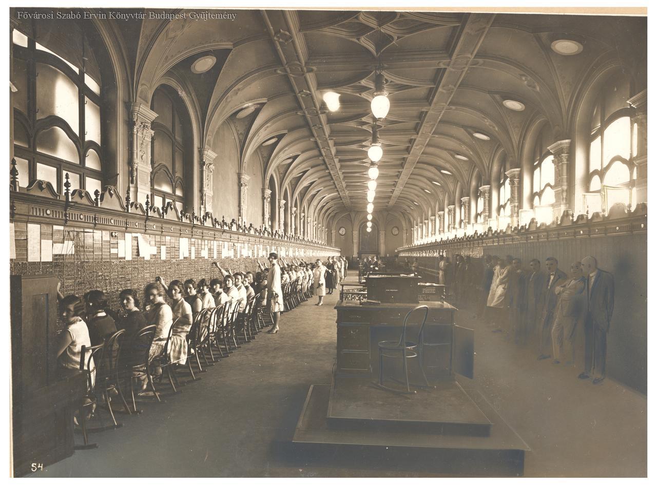 [A Terézvárosi telefonközpont kapcsolóterme alkalmazottakkal]