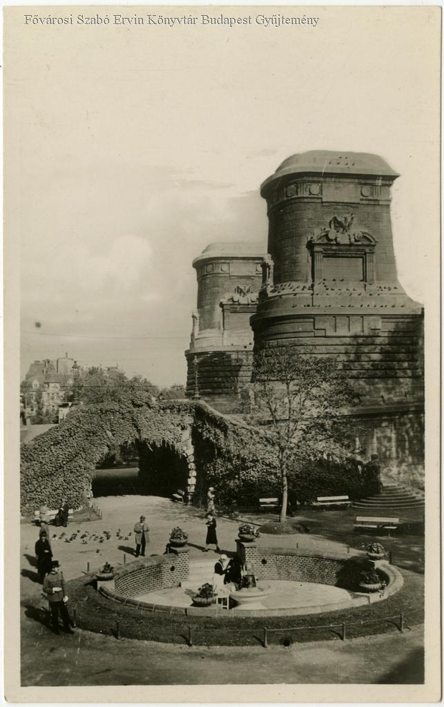 képes levelezőlap, hídfő, aluljáró, fürdő, gyógyvíz, forráshely, kút, park, 1930-as évek