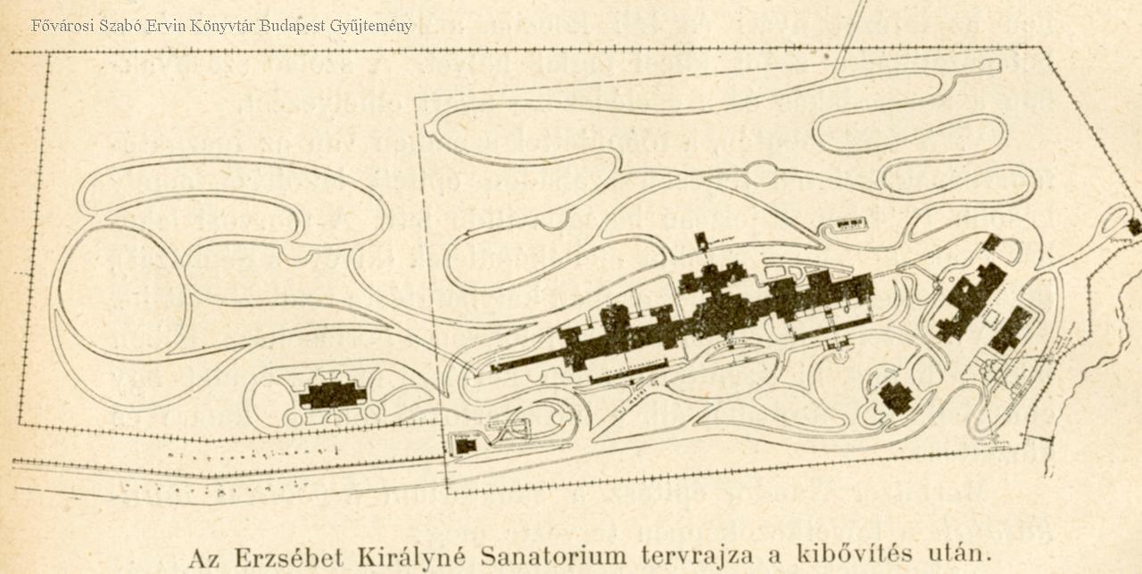Az Erzsébet Királyné Sanatórium tervrajza a kibővítés után
