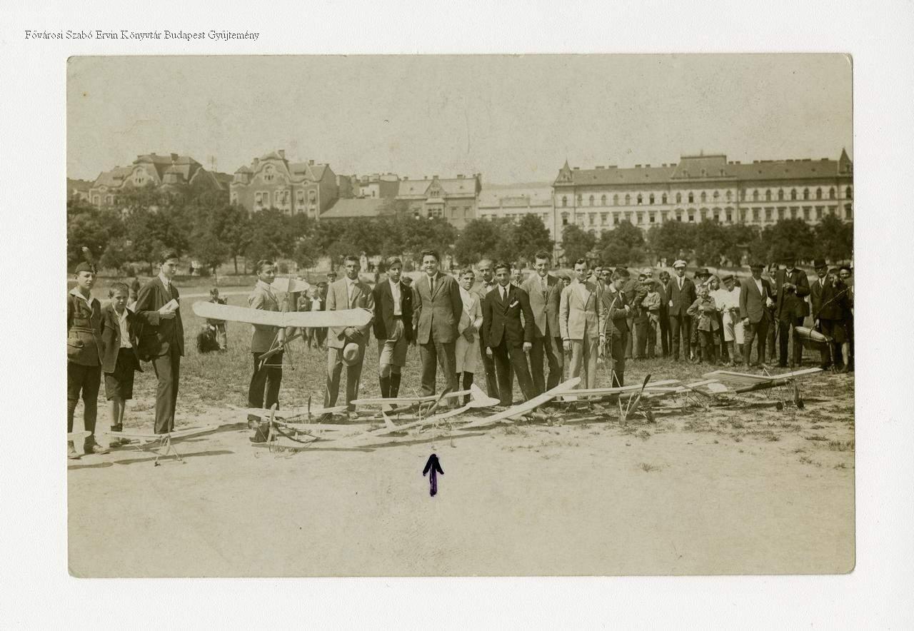 Modellezőverseny Bp.-en Középen a győztes Lampich Árpád későbbi világrekorder repülő