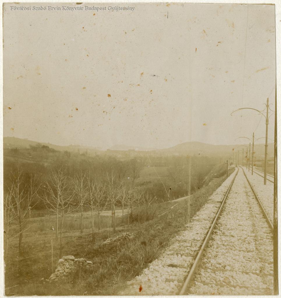 [Hűvösvölgyi látkép a 83-as BKVT-villamos vonalán a Nagy-híd felé, 1910 tavaszán]