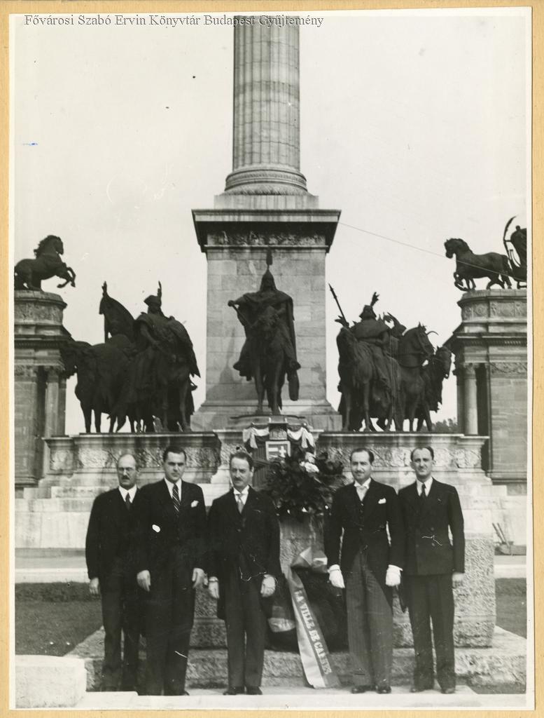 polgármester, külkapcsolat, küldöttség, koszorú, férfi, szobor