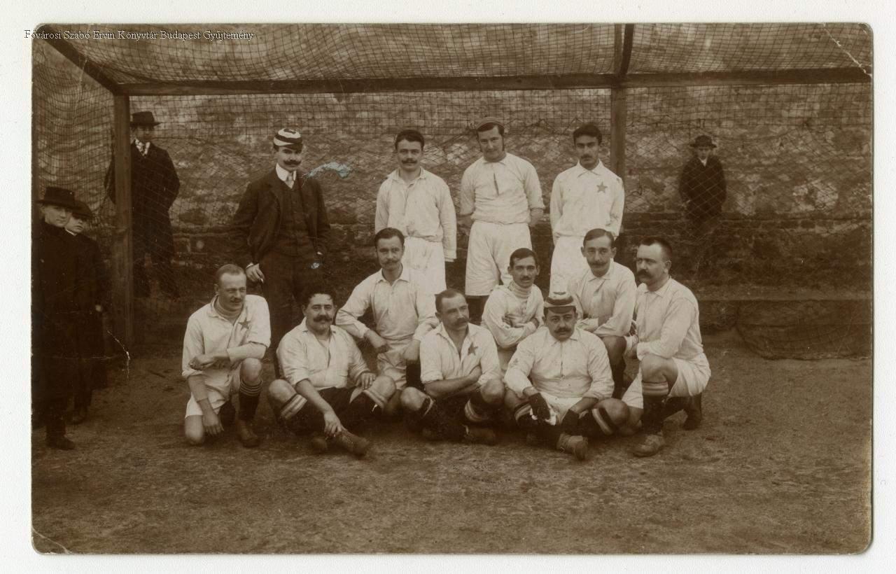 labdarúgó, férfi, labdarúgás, labdarúgópálya, sportegyesület, képes levelezőlap, külső felvétel, csoportkép, 1900-as évek