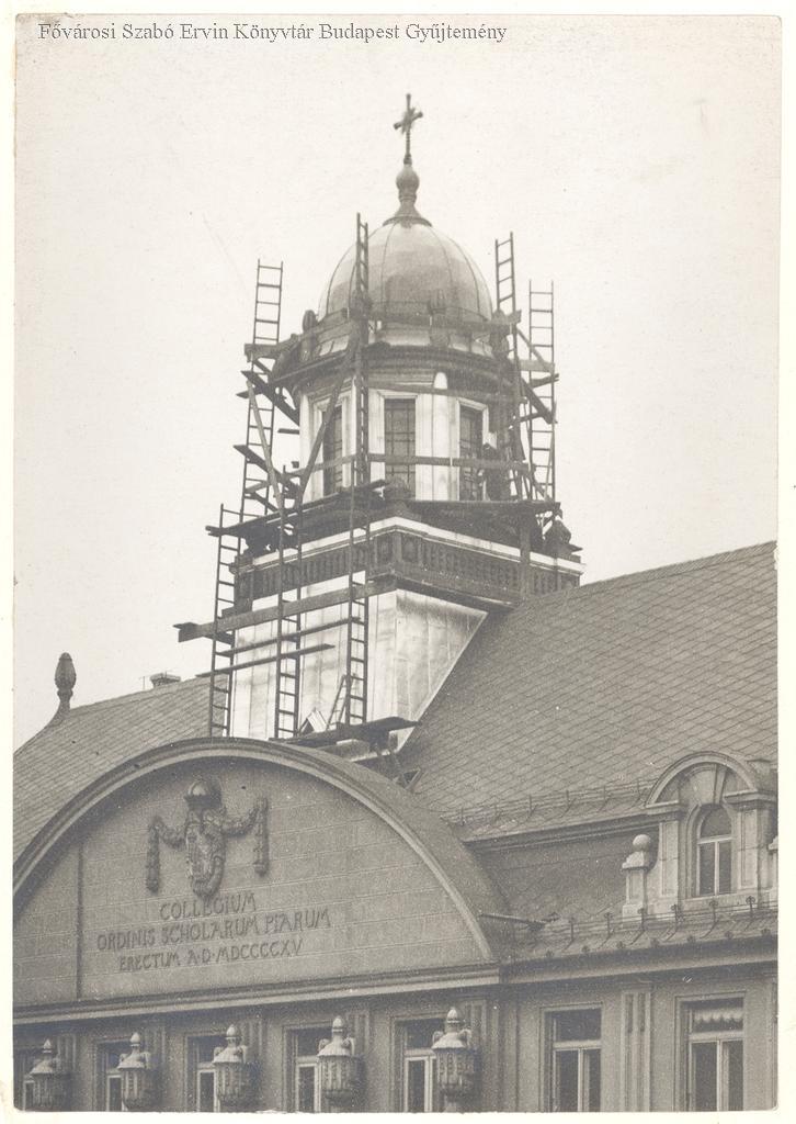 piaristák, rendház, állvány, torony, építés, torony, épületkép, 1914 után