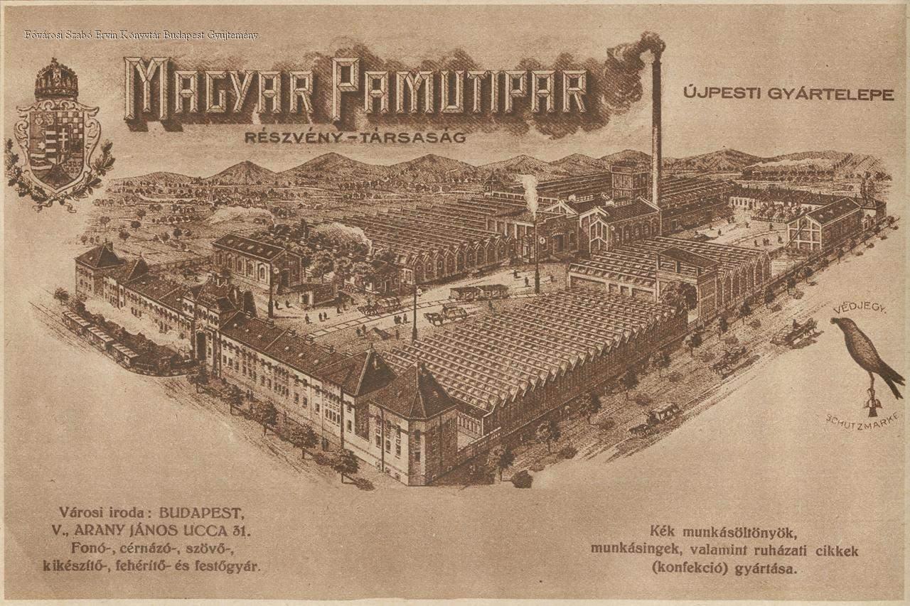 [A Magyar Pamutipar Rt. újpesti gyártelepének látképe madártávlatból]