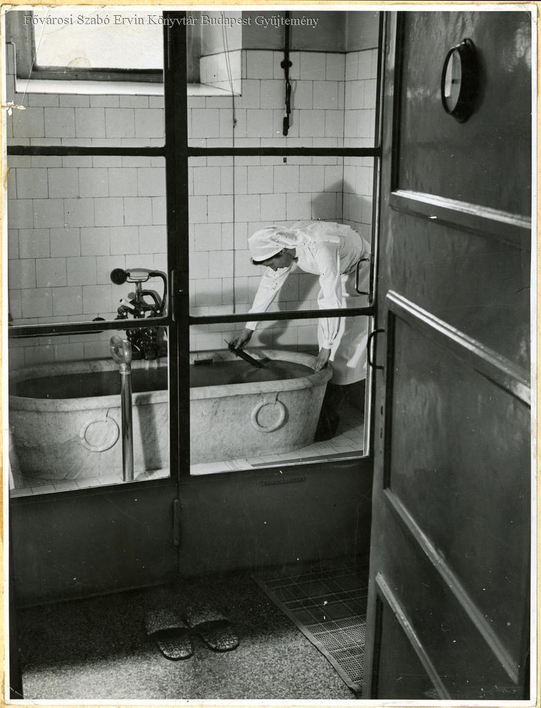gyógyfürdő, kád, ápoló, óra, papucs, vízcsap