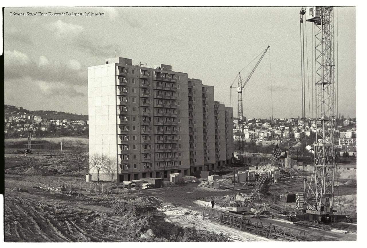 külső felvétel, épületkép, lakóépület, építés, daru, 1980-as évek