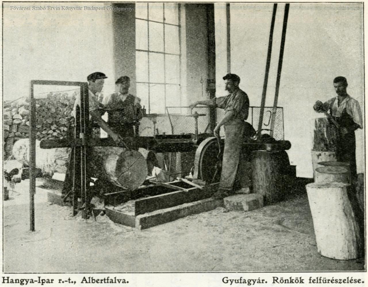 A Hangya-Ipar Rt. albertfalvai gyufagyára, Rönkök felfűrészelése