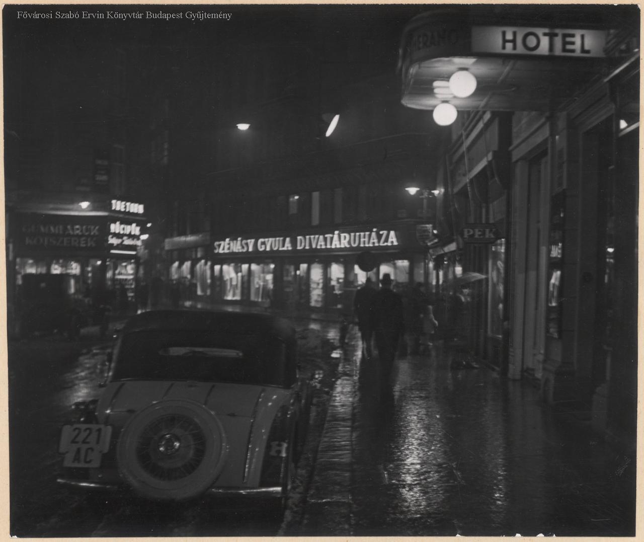 [Este a Bécsi utca, a Szervita és a Kristóf terek találkozásánál, 1930]