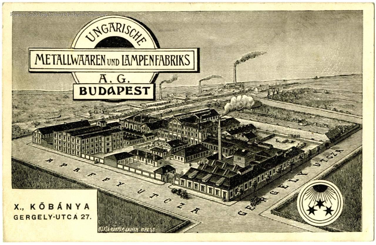 Ungarische Metalwaaren und Lampenfabriks A. G. Budapest X., Kőbánya Gergely-utca 27.