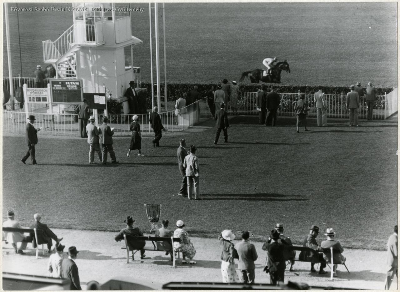 lóverseny, lovaglás, sportlétesítmény, sportfogadás, közönség, sajtófotó, 1930 körül