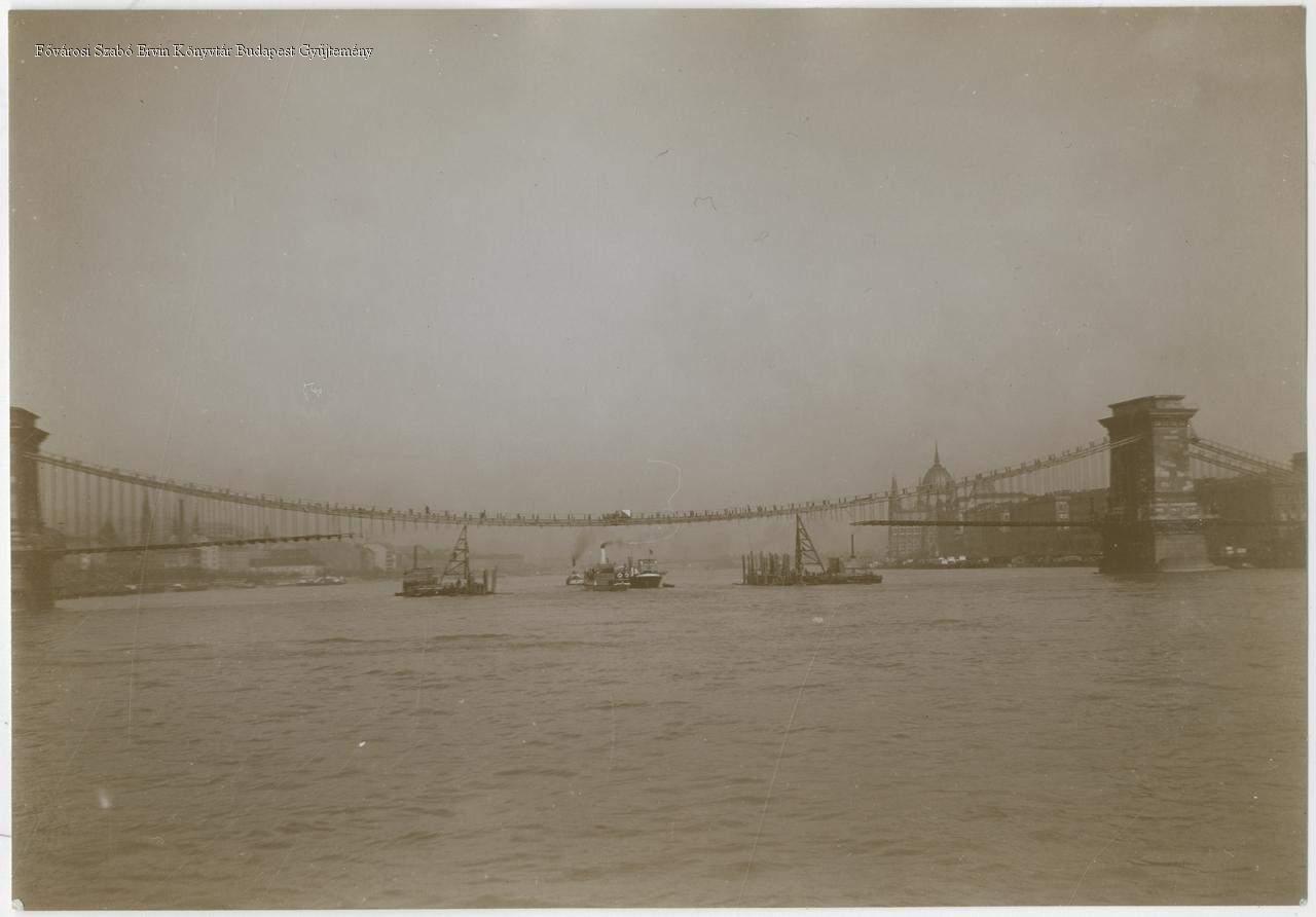 A Lánchíd átépítése, vasszerkezetének megerősítése. Teljes rekonstrukció: 1914. február 3-tól 1915. november 26-ig.