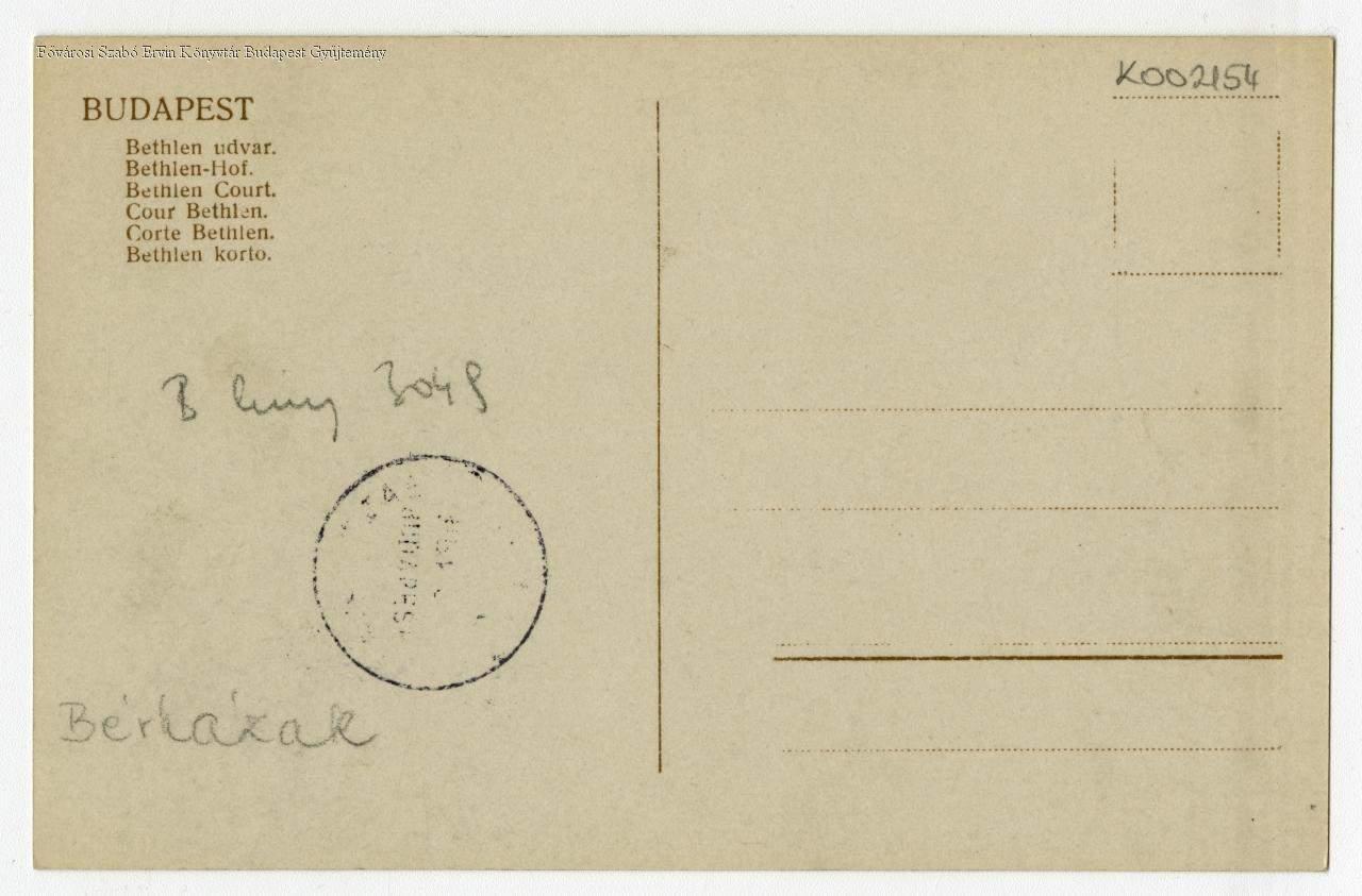 Budapest Bethlen udvar : Bethlen-Hof : Bethlen Court : Cour Bethlen : Corte Bethlen : Bethlen korto