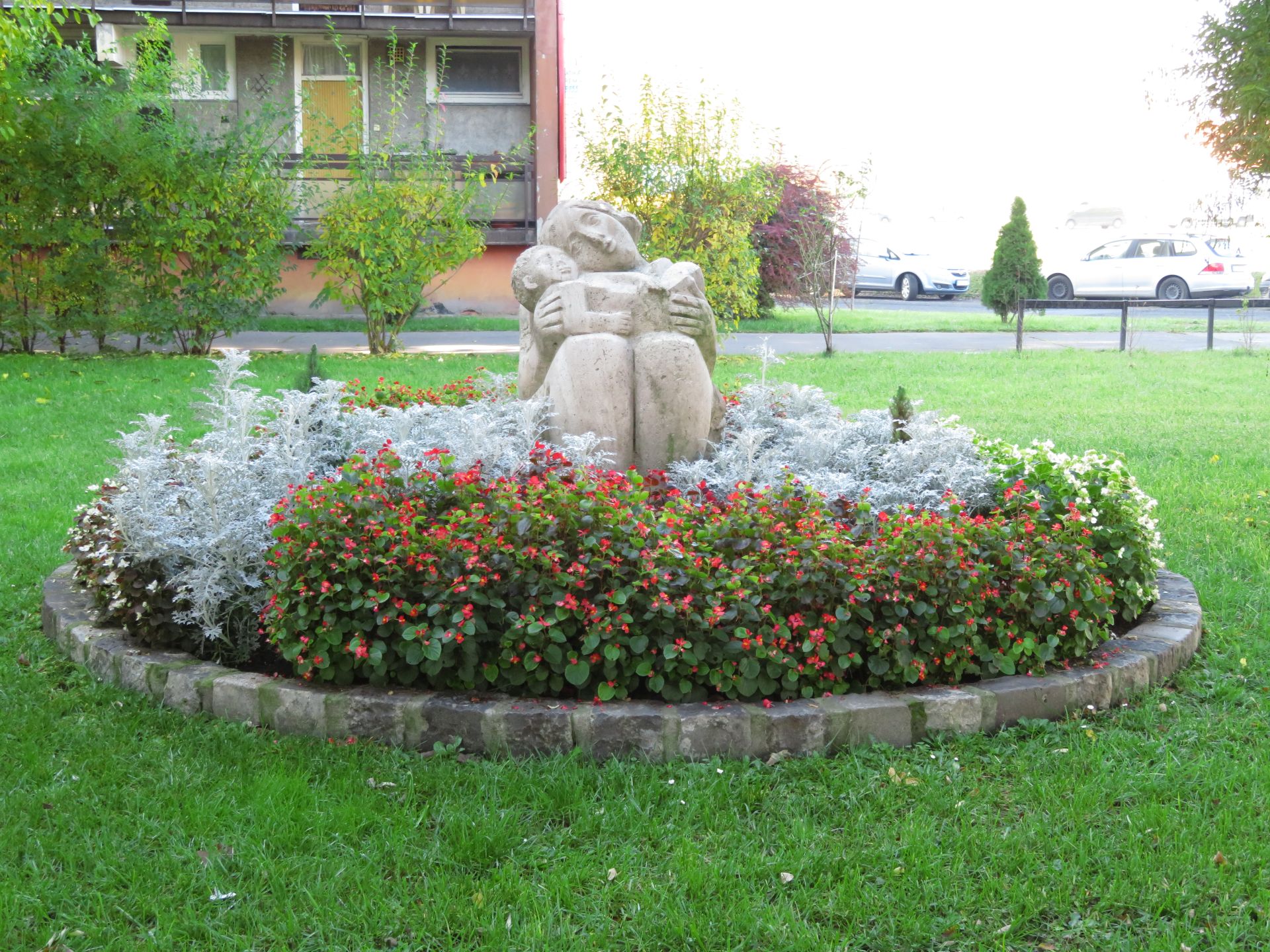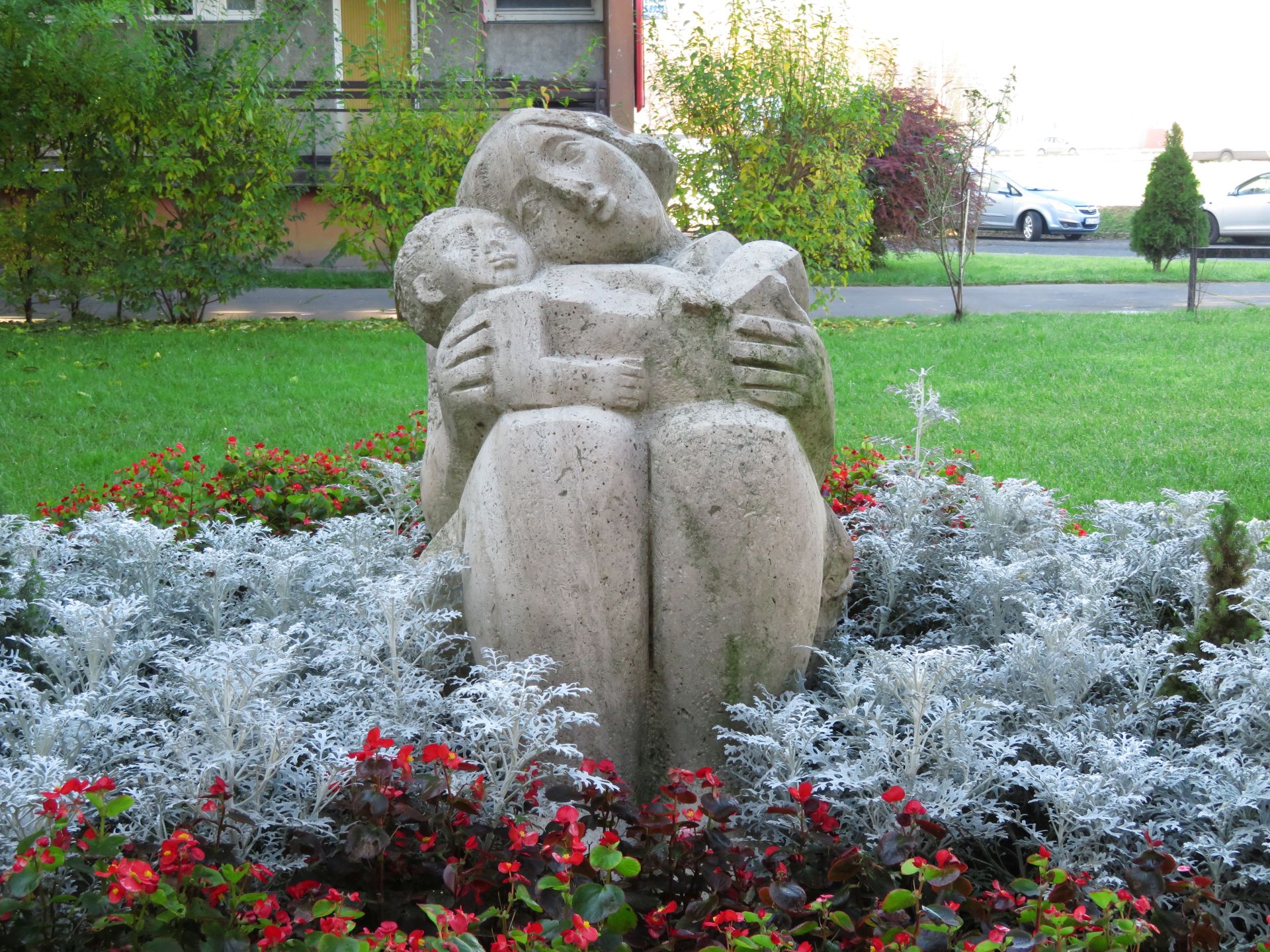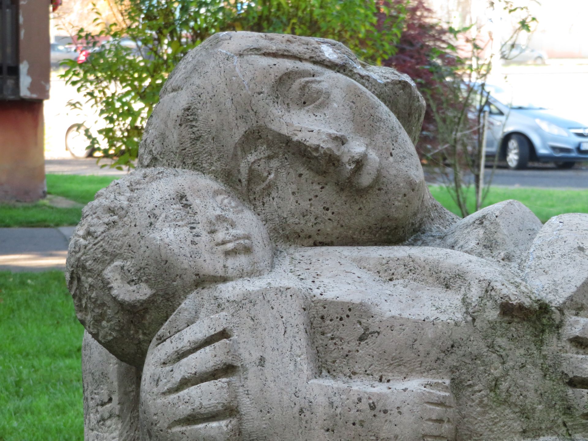 Seregi József (1939- ) Anya gyermekével című alkotása mészkőből készült. Egy anyát mintáz, aki ül és nagy szeretettel térdén hintáztatja kisgyermekét.