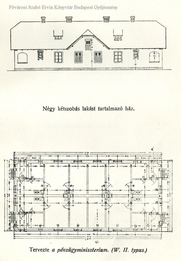 Négy kétszobás lakást tartalmazó ház, tervezte a Pénzügyminisztérium [A kispesti Állami Munkástelep lakóházai]