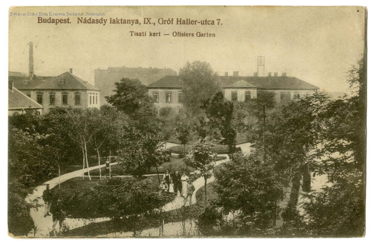 Budapest, Nádasdy laktanya, IX., Gróf Haller-utca 7. Tiszti kert : Ofisiers Garten : levelező-lap