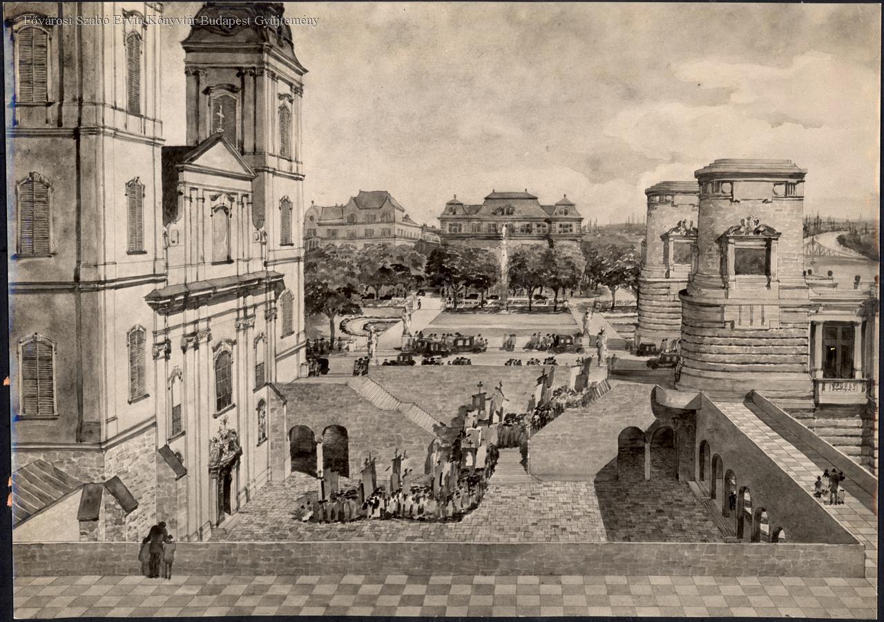 [Vágó József árkádos meg nem valósult terve a belvárosi plébániatemplom és környékének rendezésére]