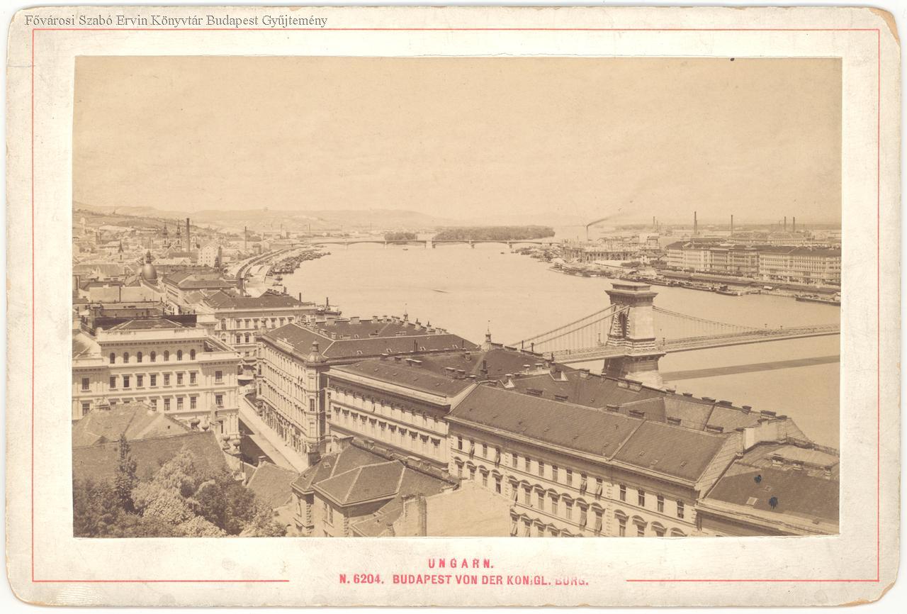 A kép bal sarkában az Öntőház utcai zsinagóga és a kereskedelmi minisztérium déli homlokzata, a Lánchíd utca jobb oldalán (a híd felől) a Barber és Klusemann-ház, a Lipthay-palota, és gr. Széchenyi Béla palotája. A háttérben épül az Országház