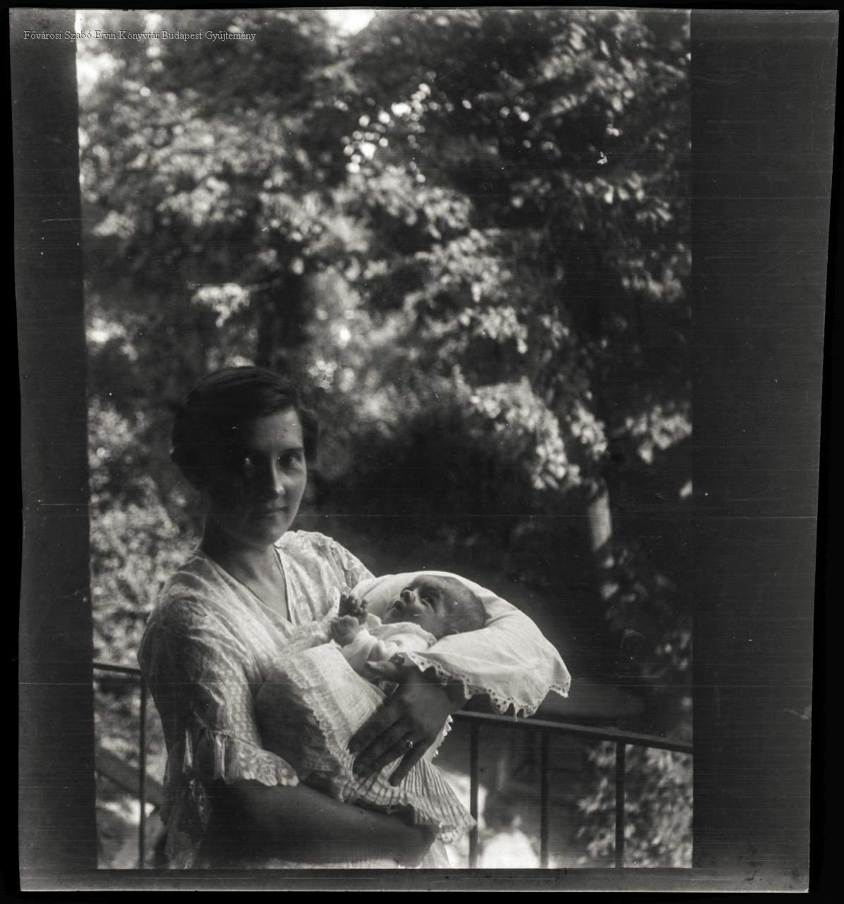 csecsemő, gyermek, anya, anyaság, nő, terasz, korlát, kert, növényzet